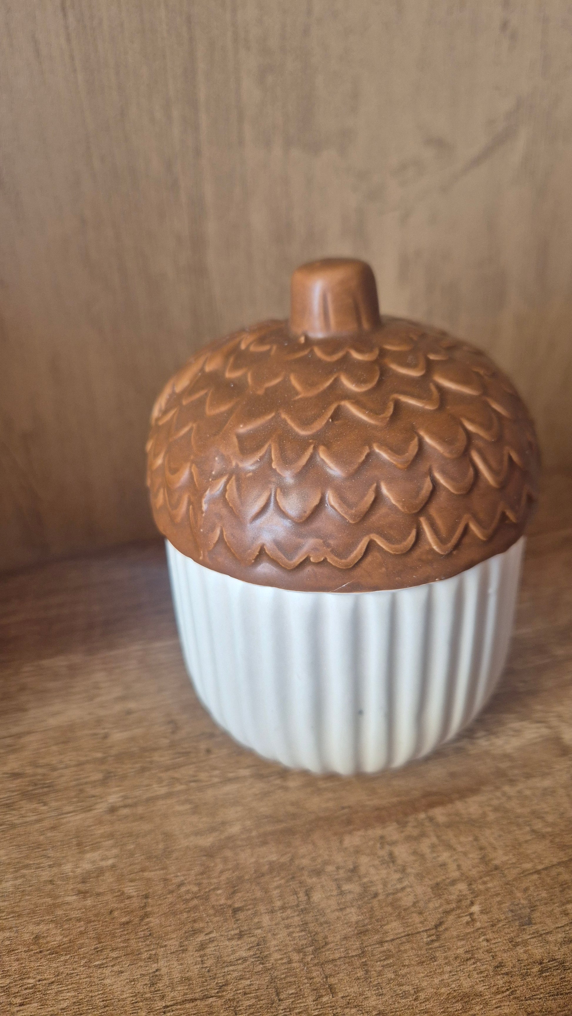 Un pequeño tesoro de bosque hecho objeto. Este quemador con forma de bellota guarda en su interior la chispa de la magia natural. Solo tienes que levantar su tapa, colocar en el interior una vela de té y dejar que el calor despierte los aromas de tus waxmelts favoritos.